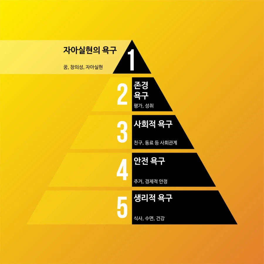 [메슬로의 욕구단계설]에 따르면, 다행스럽게도 내 생각이 꽤나 올바른 마인드였다는 걸 뒷받침 해준다.